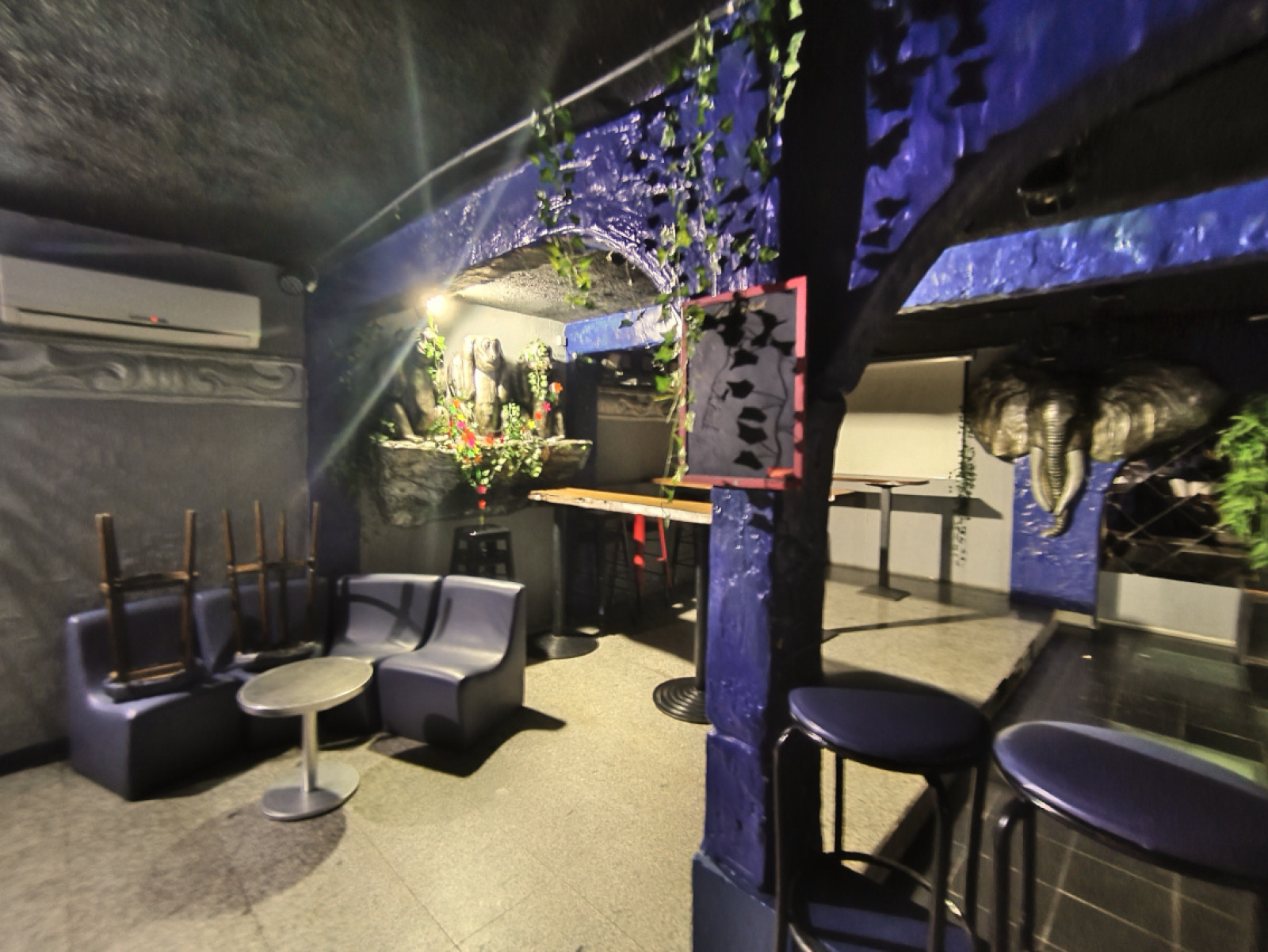 Les surfaces intérieures comprennent une salle principale avec bar, espace de convivialité et zone musicale, une entrée indépendante avec sanitaires, ainsi que des espaces de stockage.