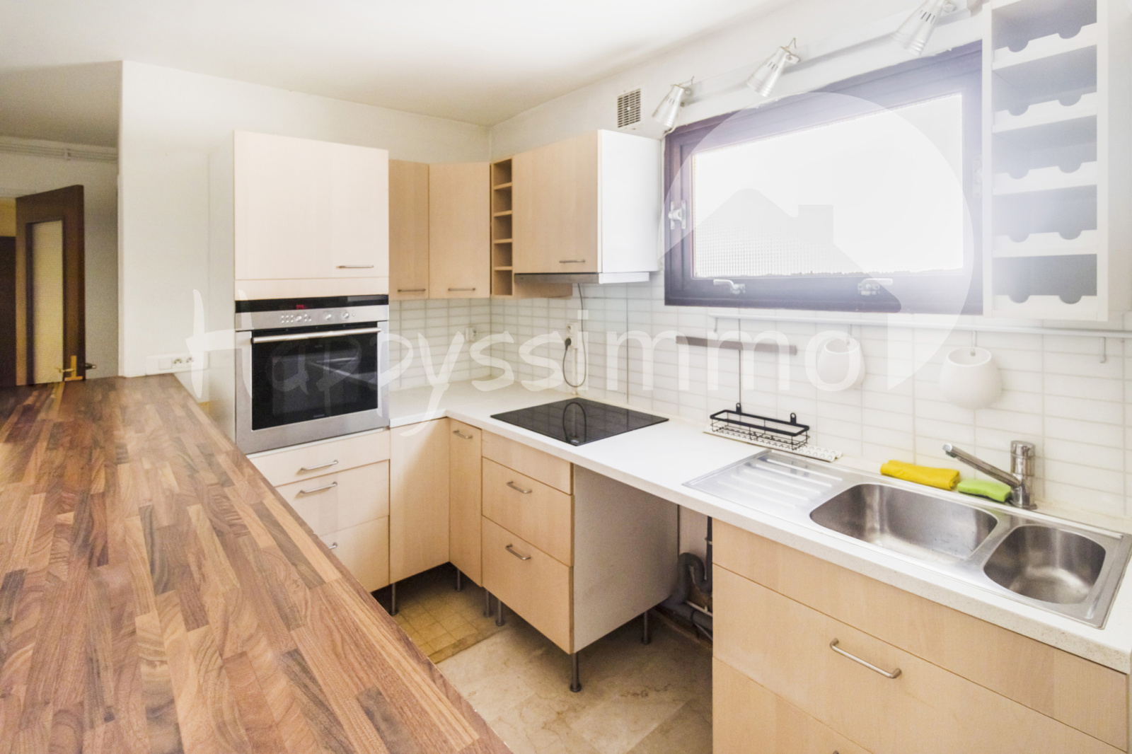 Il se compose d'une vaste entrée donnant sur une grande cuisine avec ilôt central comprenant un cellier, d'un séjour lumineux de 30m², une spatieuse chambre avec placards ainsi que d'une salle de bains avec WC séparés.