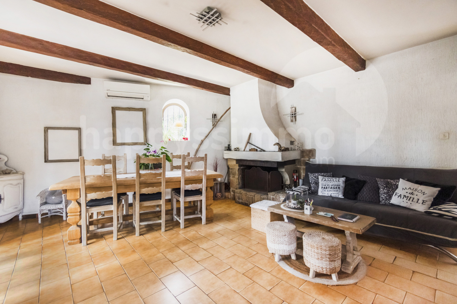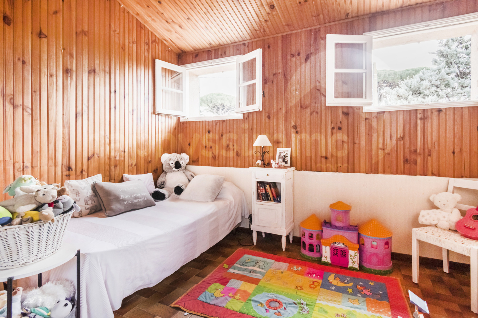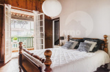 - au rez-de-chaussée: une loggia ouvrant sur le jardin et donnant sur la pièce principale avec cheminée et escalier d'accès à l'étage, une chambre, une cuisine avec accès au jardin, une salle de bains, WC et placards,