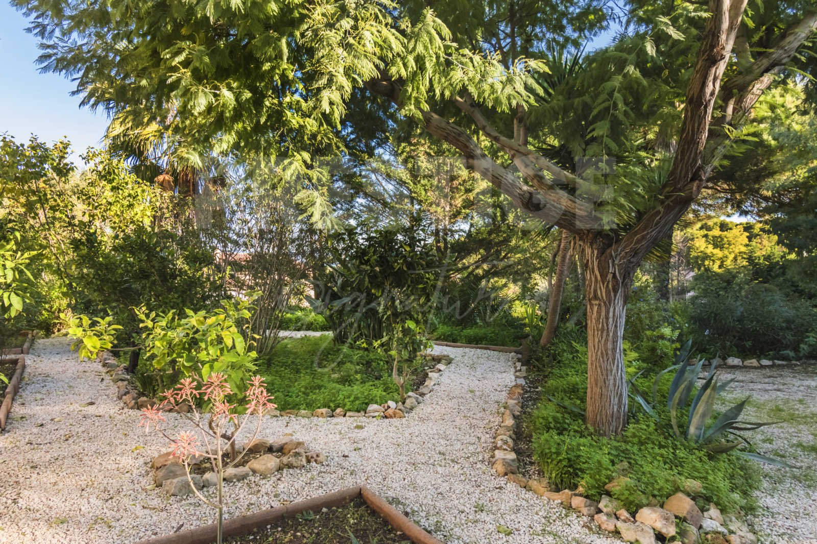 Le terrain, soigneusement paysagé, accueille un citronnier, un mandarinier, plusieurs oliviers ainsi qu’un pin parasol situé en zone naturelle, conférant au lieu une ambiance méditerranéenne douce et préservée.