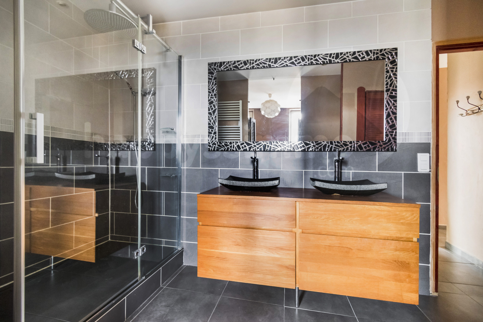 Celui-ci se compose d'une cuisine ouverte sur le séjour avec mur en pierre, d'un espace bureau avec dressing, d'une chambre avec salle d'eau, d'un dégagement, d'une seconde chambre avec un point d'eau avec un accés au balcon.
