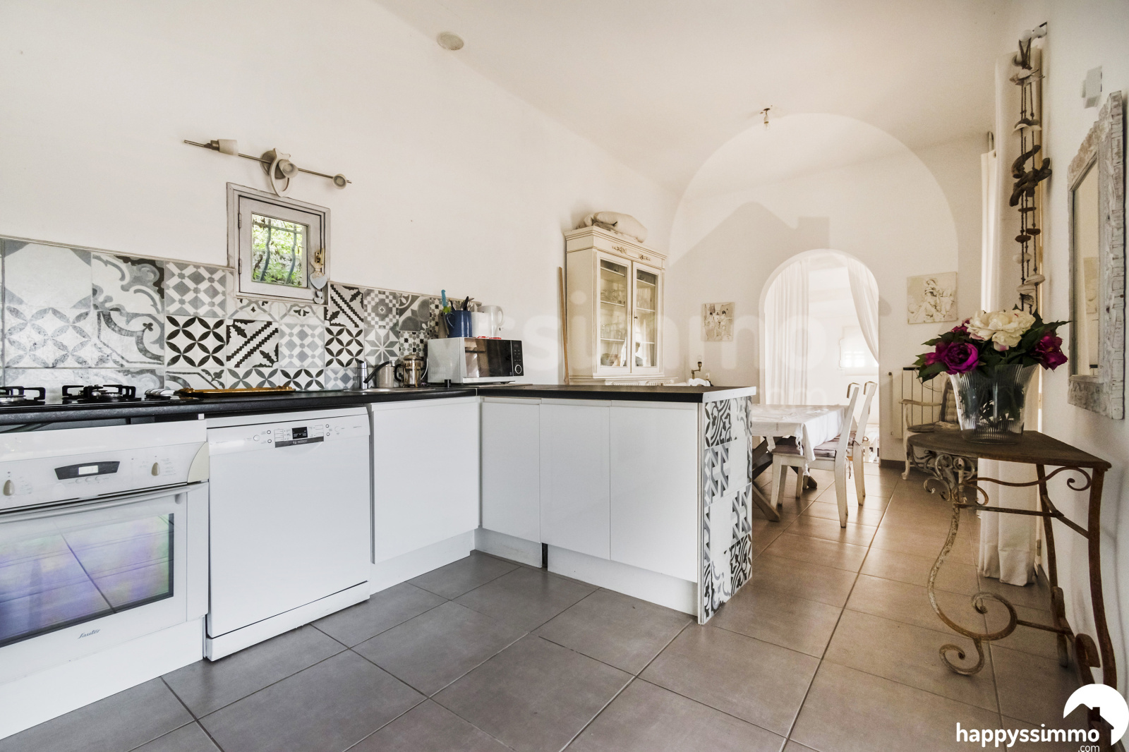 Maison très lumineuse et atypique, 4 pièces d'environ 100 m2, exposition sud, plein pied avec terrasse semi couverte de 30 m2 sur terrain clos et arboré de 850 m2.