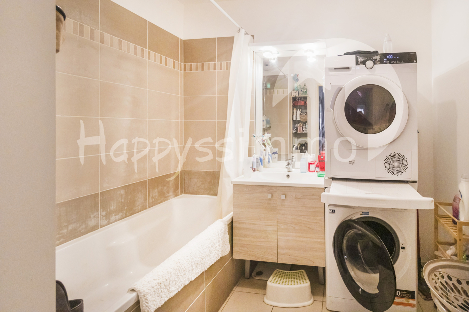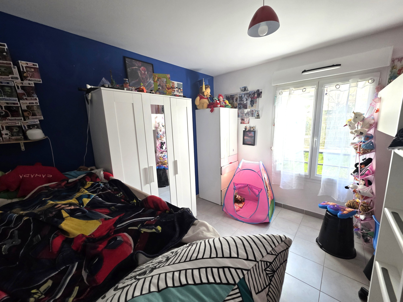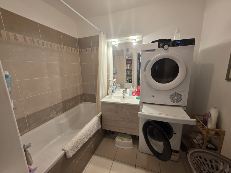 Deux chambres accueillantes composent l'espace nuit, accompagnées d'une salle de bains contemporaine avec espace buanderie et d'un WC indépendant. Les rangements intégrés facilitent le quotidien.