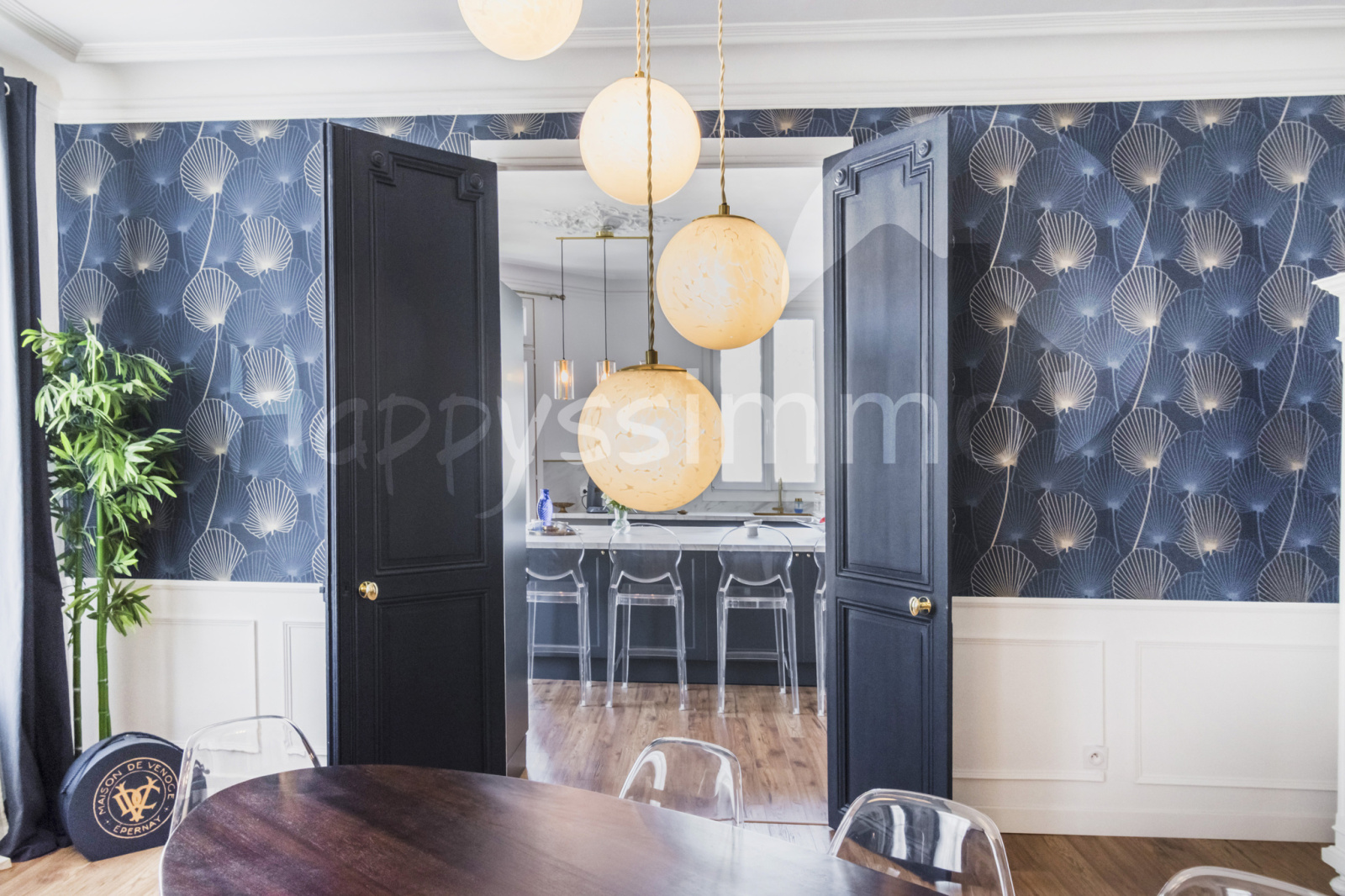 Dès l'entrée, le ton est donné avec une ambiance élégante mise en valeur par un bleu profond plein de caractère.