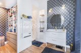 L'espace nuit comprend deux chambres, dont une superbe suite parentale avec espace dressing et salle d'eau privative, ainsi qu'une seconde salle d'eau avec wc (à l'entrée).