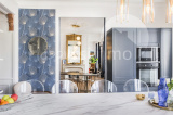 L'appartement se compose d'une cuisine indépendante entièrement équipée, au style affirmé, d'une salle de manger conviviale, ainsi que d'un salon spacieux, aménagé dans une pièce qui était auparavant une chambre.