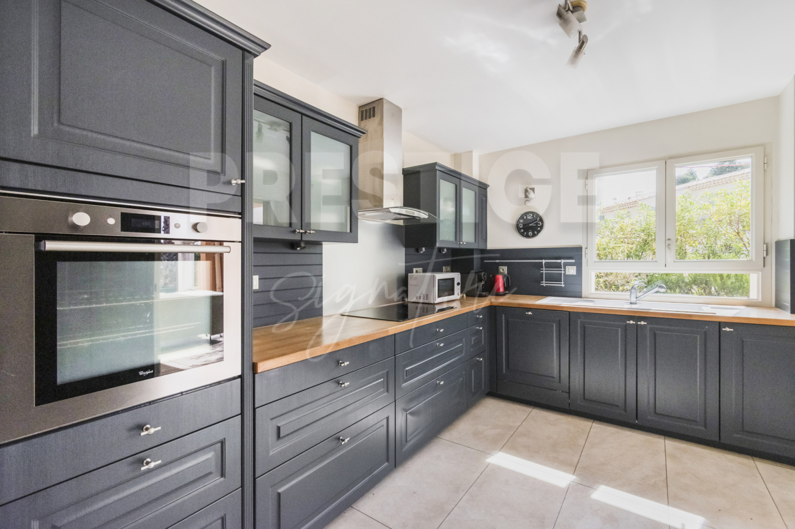 De configuration T4, il possède un grand séjour et une jolie cuisine aménagée séparée, prolongés par deux belles terrassses couvertes, sans vis à vis.La partie nuit est constituée d'une suite parentale, de 2 chambres et d'une grande salle- de- bain et d'une salle d'eau.