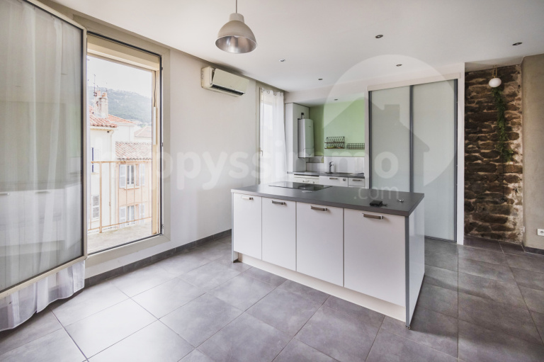 Celui-ci se compose d'une cuisine ouverte sur le séjour avec mur en pierre, d'un espace bureau avec dressing, d'une chambre avec salle d'eau, d'un dégagement, d'une seconde chambre avec un point d'eau avec un accés au balcon.