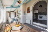 Maison très lumineuse et atypique, 4 pièces d'environ 100 m2, exposition sud, plein pied avec terrasse semi couverte de 30 m2 sur terrain clos et arboré de 850 m2.