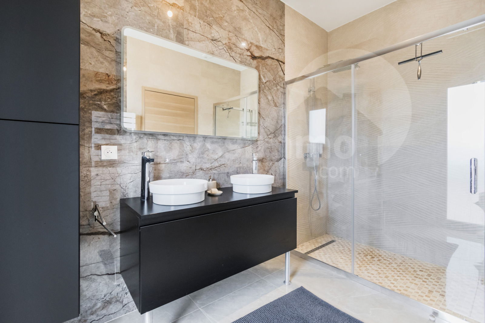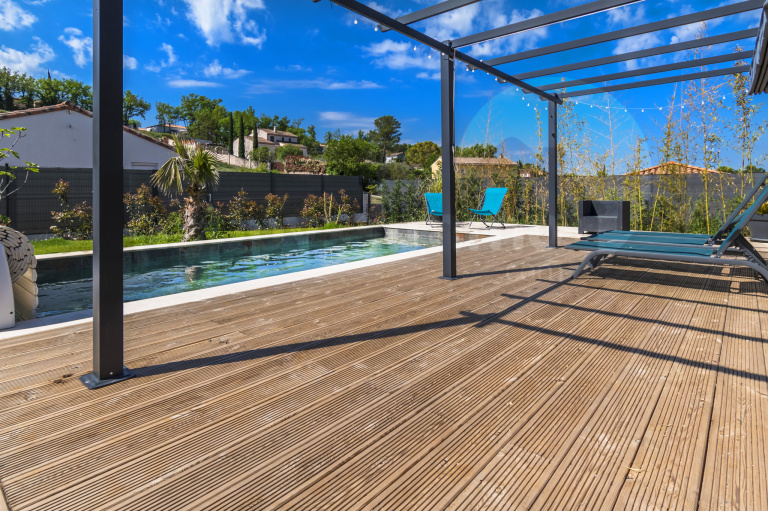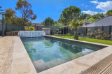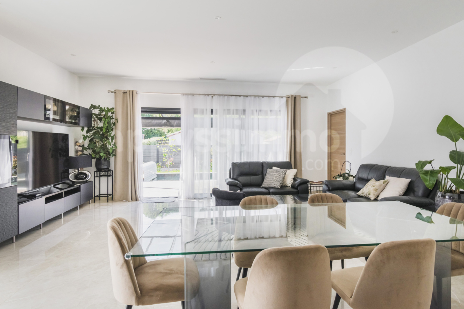 Située dans un environnement calme, à vendre villa contemporaine de plain-pied, construite en 2024, d'une surface de 115 m² édifiée sur un terrain paysagé d'environ 800 m², avec une magnifique piscine au carrelage de Bali.