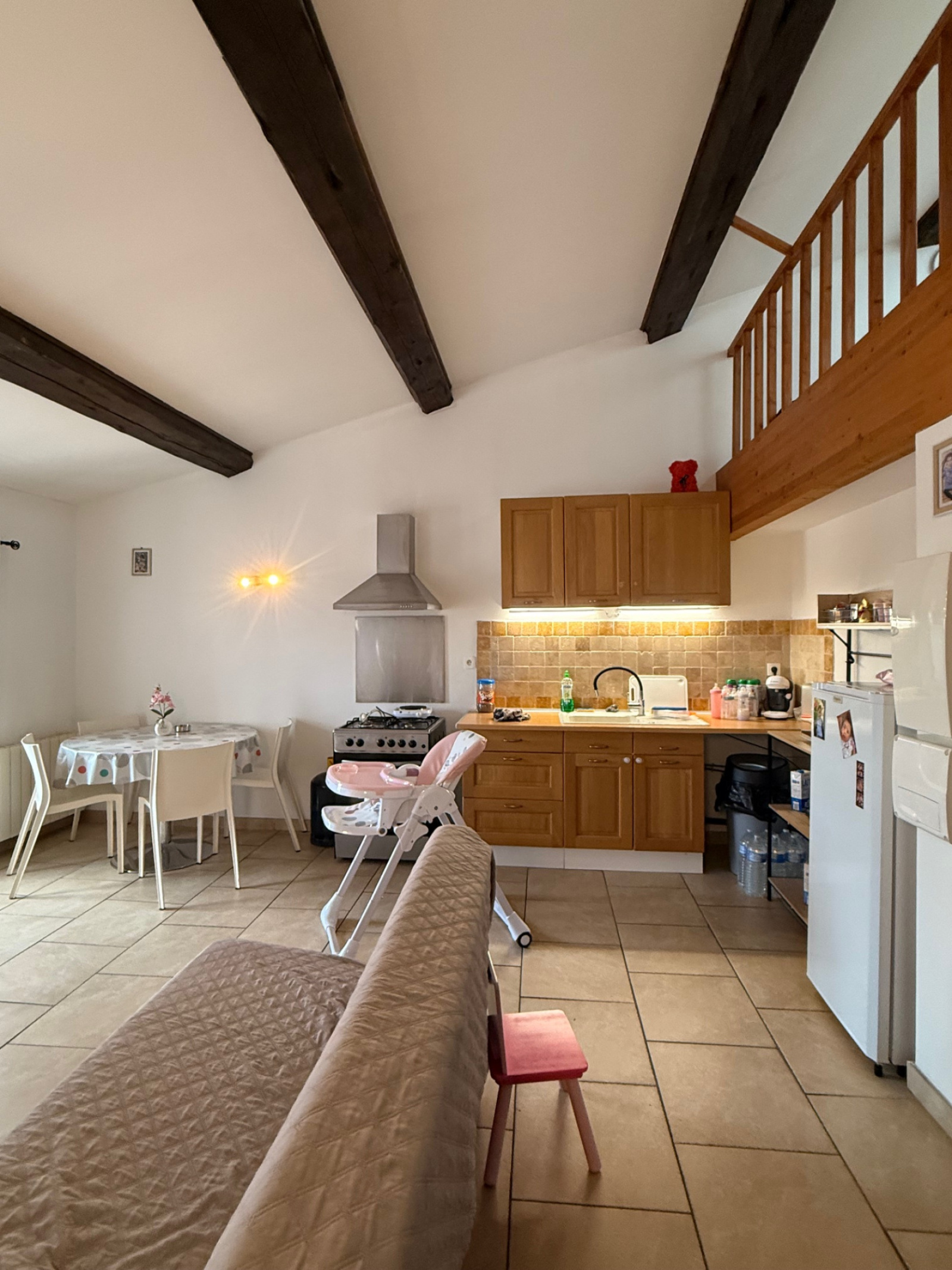 Elle se compose: d'une cuisine ouverte sur un vaste séjour avec cheminée, d'une chambre avec salle d'eau, d'un wc, et d'un accés au garage avec espace buanderie.
