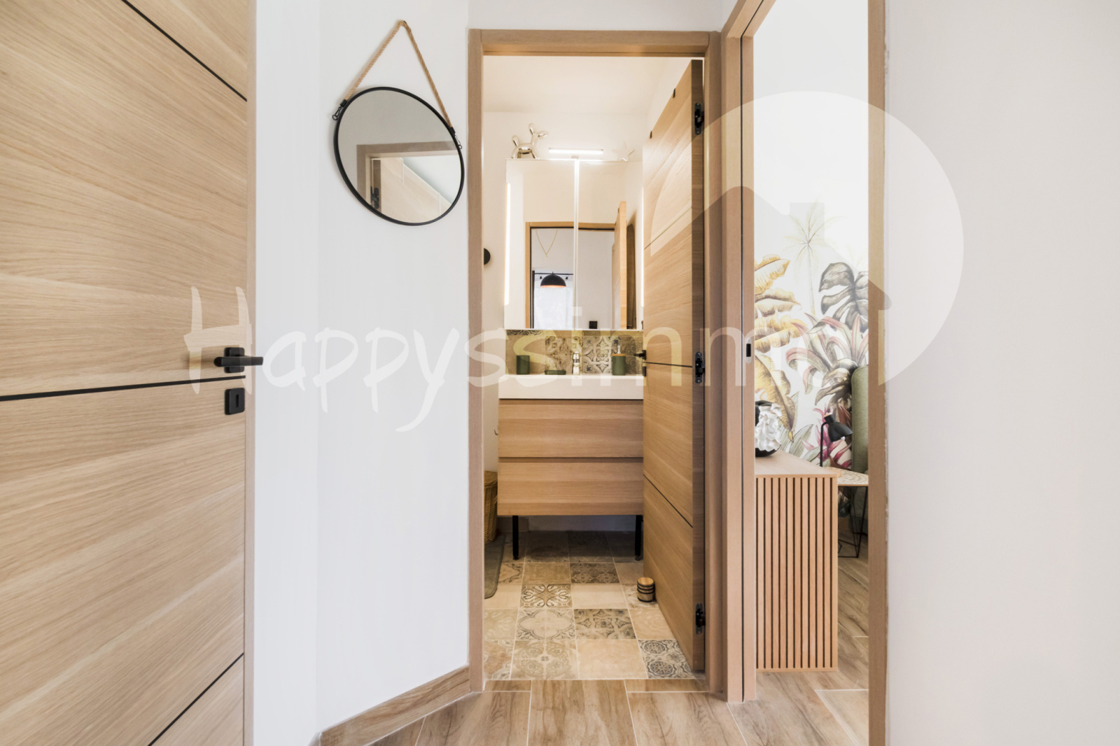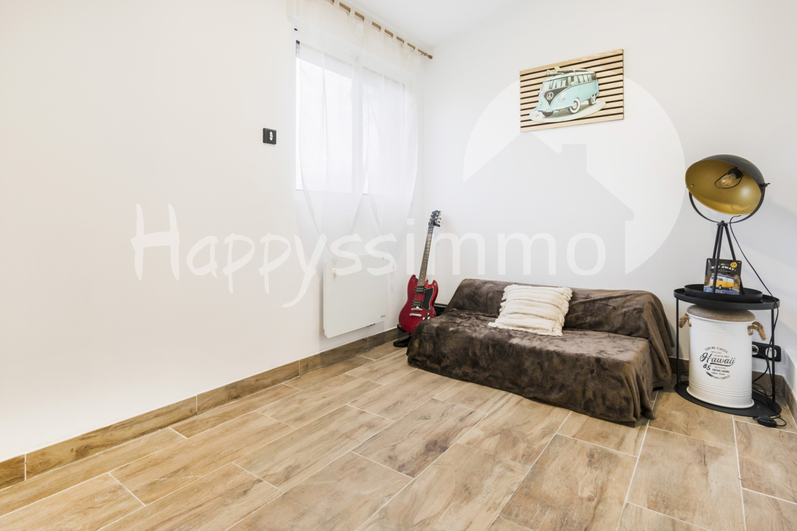 - Une cuisine ouverte sur le séjour, deux chambres, un espace buanderie, une salle d'eau, un wc.