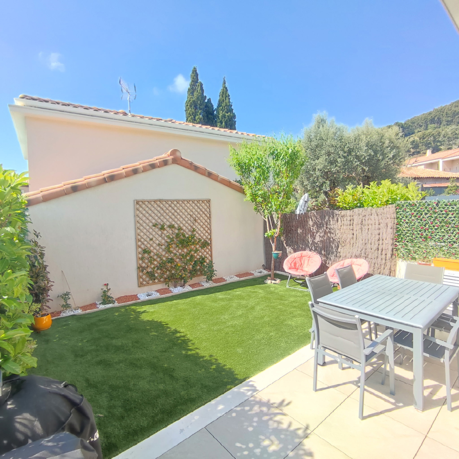 Extérieur Privatif : Profitez d'un agréable jardin d'environ 130 m² et d'une terrasse idéale pour vos soirées d'été.