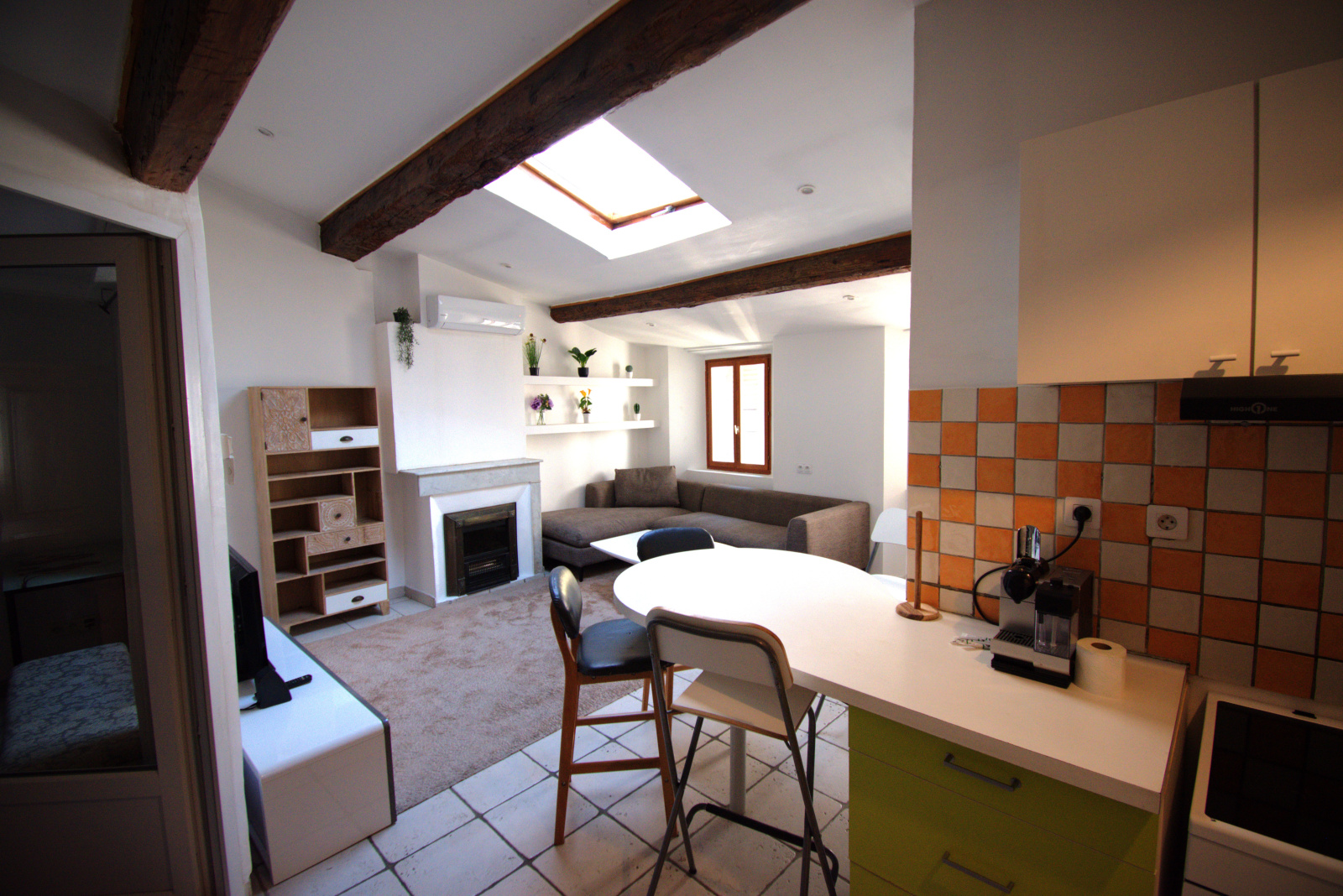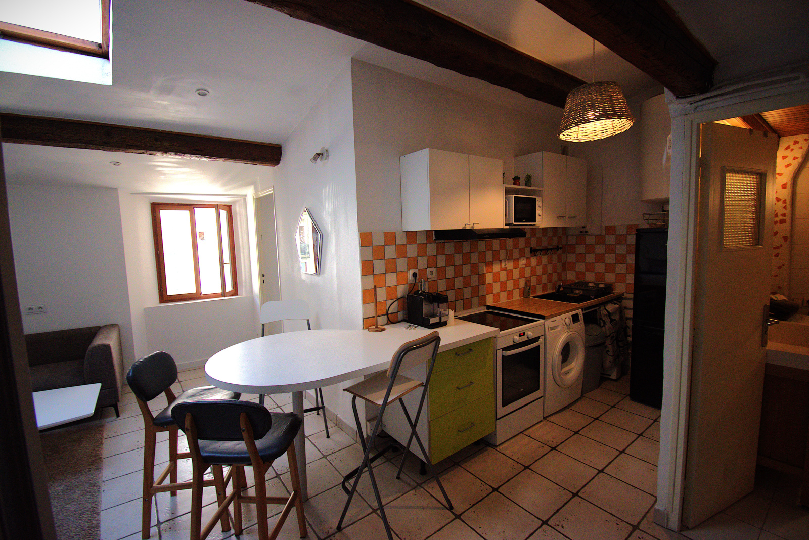 L’appartement est tout équipé, climatisation réversible, sèche-linge ainsi que machine à laver, four, micro-onde, et bien d’autres rangements. Spots leds au plafond, poutres apparentes, une déco moderne, agréable.