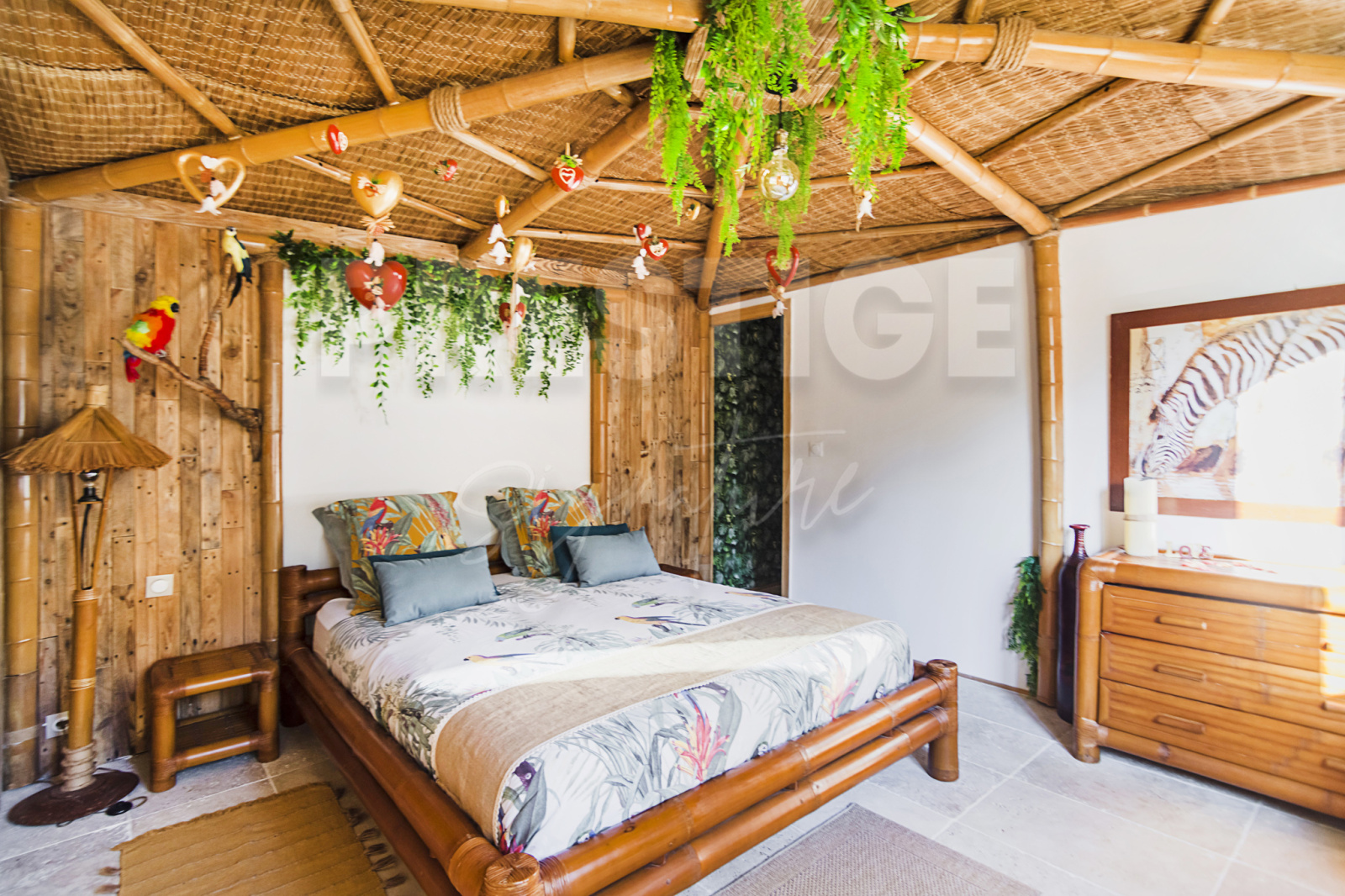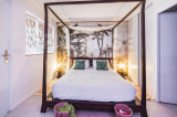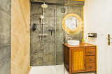 A l'étage, un grand pallier ouvert sur le séjour, dessert une suite avec salle d'eau et tropézienne privative, ainsi que deux autres chambres bénéficiant d'un balcon, et d'une salle d'eau commune.